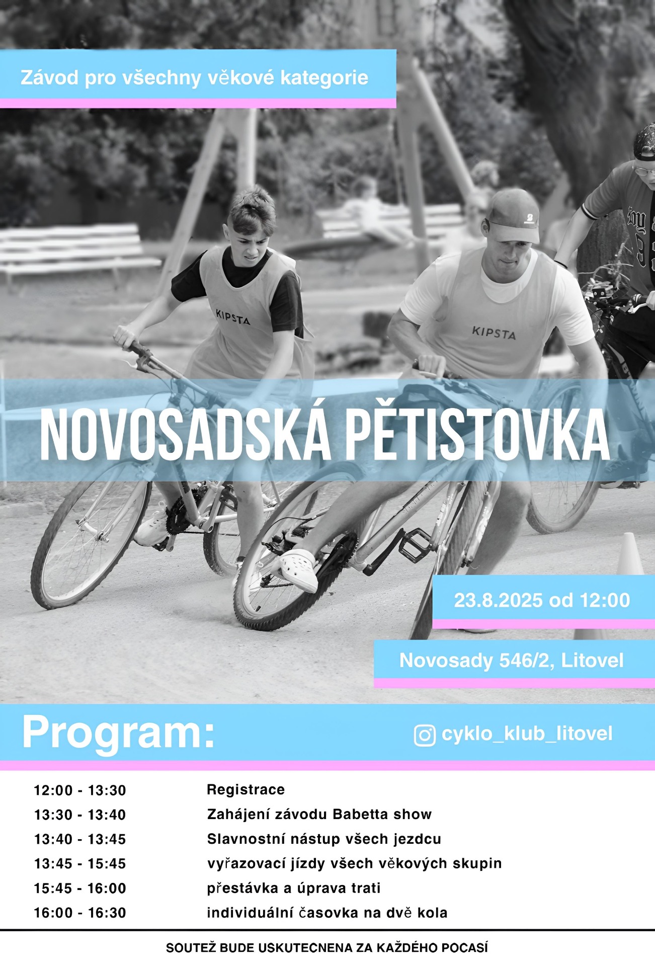 BĚHEM ZÁVODU ( DĚTSKÉ AKCE ) JE ZAKÁZÁNO POUŽÍVAT SPROSTÁ SLOVA. V PŘÍPADĚ POUŽITÍ ZÁVODNÍK NESMÍ POKRAČOVAT V SOUTĚŽI A MUSÍ OPUSTIT AREÁL ZÁVODIŠTĚ